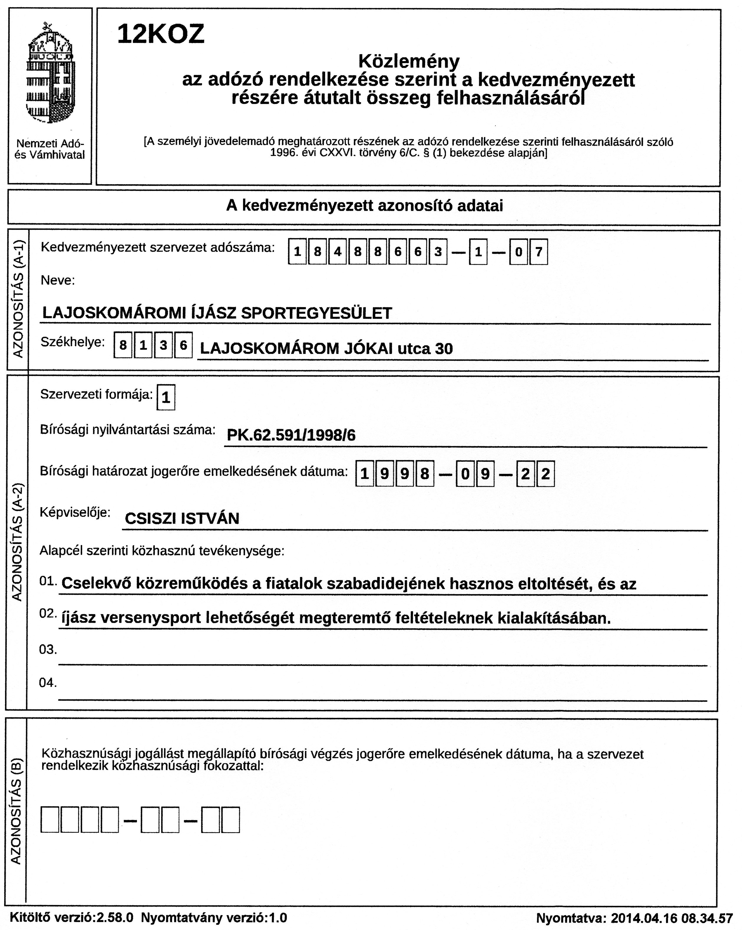 2003-ban egy alapszabály-módosítást hajtottunk végre, ami szükséges volt ahhoz, hogy a felajánlott adó egy százalékához hozzájuthassunk.Ezzel az alapszabály módosítással egy kissebb összeghez jutottunk. Röviden ennyi megalakulásunk története.
