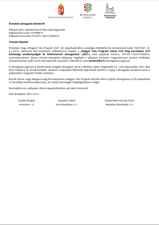 1998-ban elindítottuk a folyamatot; hivatalosan bejegyzett szervezet szeretnénk lenni. Az egyesület neve: Lajoskomáromi Íjász Sportegyesület. Pontokba szedtük az alapszabályt, és megválasztottuk a vezetőséget. Szeptemberben 22-dikétől hivatalosan bejegyzett egyesület vagyunk! Elkészült az adószámos pecsétünk, és számlaszámot is kaptunk. Évről-évre az az íjász, aki kategóriájában a legjobb, egy kupa tulajdonosa lesz egy évig. Ha ezt háromszor megismétli, az övé a kupa, és az ezzel járó cím: "az év legjobb lövője". Ezta kupát csak az egyesület tagjai nyerhetik el.